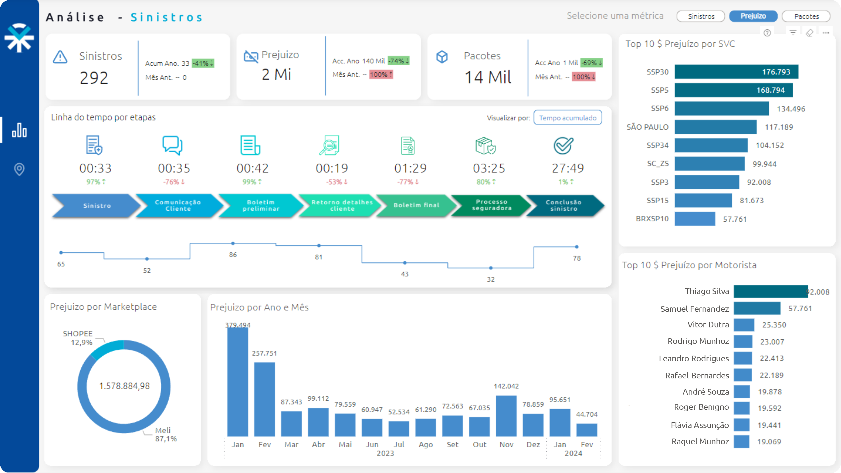Disponibilizamos o novo módulo de sinistros. Por meio da nossa plataforma web, oferecemos aos usuários internos uma solução abrangente para gerenciar todos os detalhes relacionados a incidentes. Isso inclui informações cruciais, como os dados do motorista e do veículo envolvido, a localização exata do incidente, os desdobramentos ocorridos, bem como os registros do boletim de ocorrência. Além disso, os usuários podem registrar informações detalhadas sobre os danos e identificar os pacotes que foram impactados pela ocorrência.